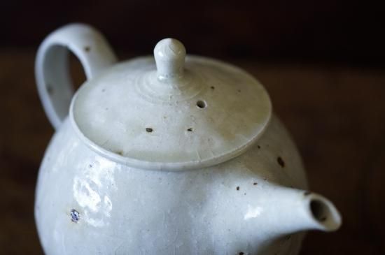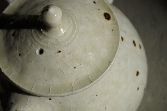 あたたかみのある白色の上に流れる透明感のある僅かに緑がかった色合いがとてもきれいな城さんの白灰釉。