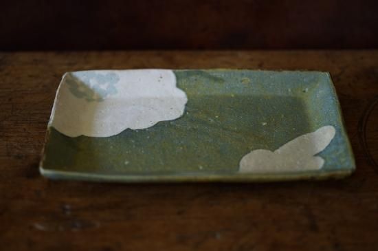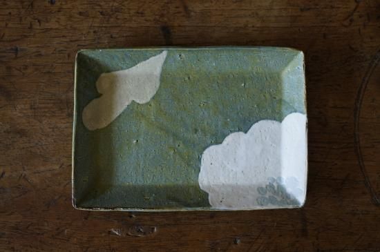 ふちの部分が少しななめに立ち上がった長方形のお皿です。