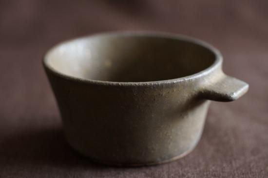 約3寸サイズの手付きボウルです。味わい深い複雑な表情の黒は趣のあるとても良い雰囲気を楽しめます。