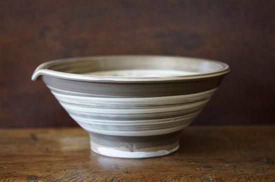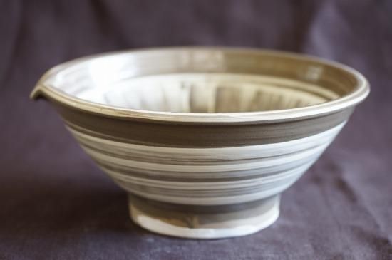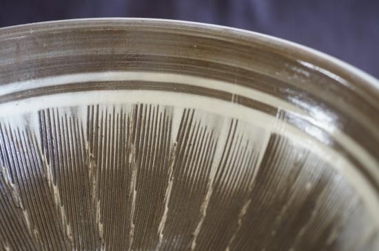小鹿田焼のすり鉢です。やや大きめな7寸サイズのすり鉢は、胡麻をすって調味料と混ぜ茹で野菜などを和えて、そのまま食卓へ。やや開いたフォルムはお料理の見栄えが良かったり、お箸を入れやすかったりと使い勝手も良く、楽しい食卓になりそうです。