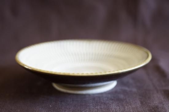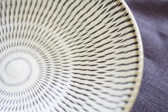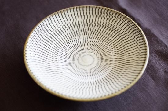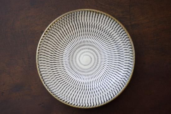 シンプルな飛び鉋(かんな)模様が美しい、約5寸サイズのお皿です。やや優しい雰囲気の飛びかんな模様です。
