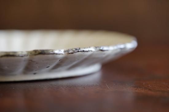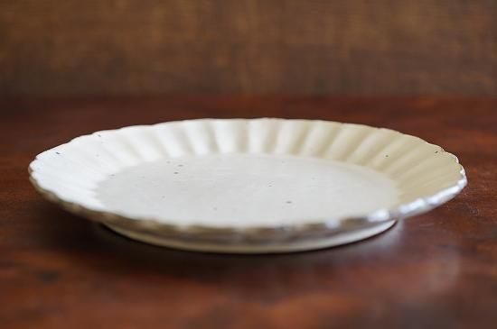 ふちの部分がお花のように広がる輪花皿は、ほぼフラットなプレートで、とても使いやすく普段使いにぴったりな雰囲気です。温かみのある白色と手仕事ならではの優しい趣が感じられる飽きのこないベーシックなうつわとして活躍してくれそうです。