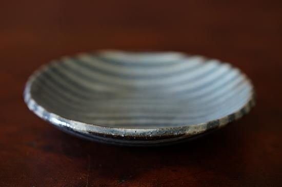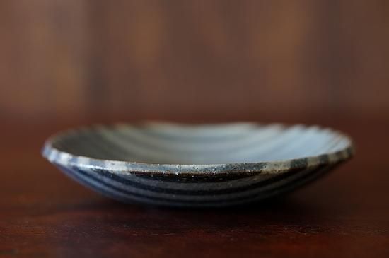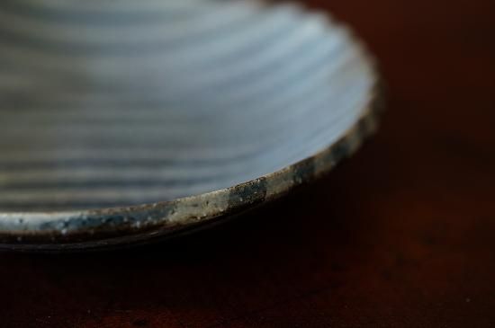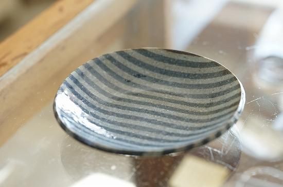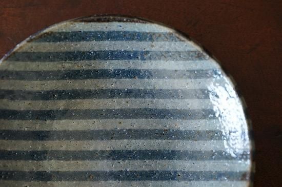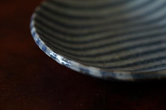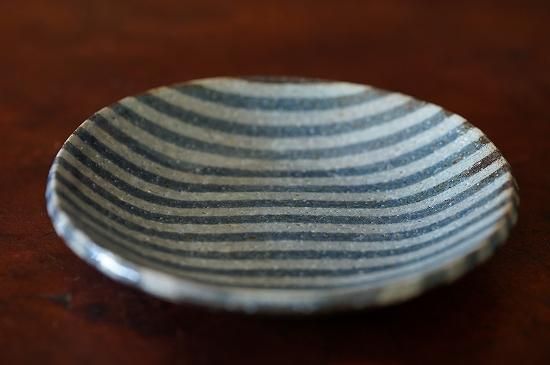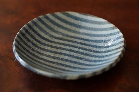練り込みによって作られるブルーのストライプが美しい4寸サイズのプレートです。