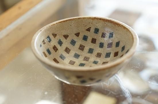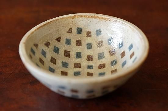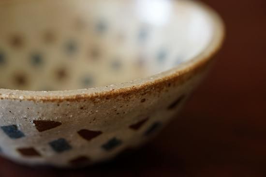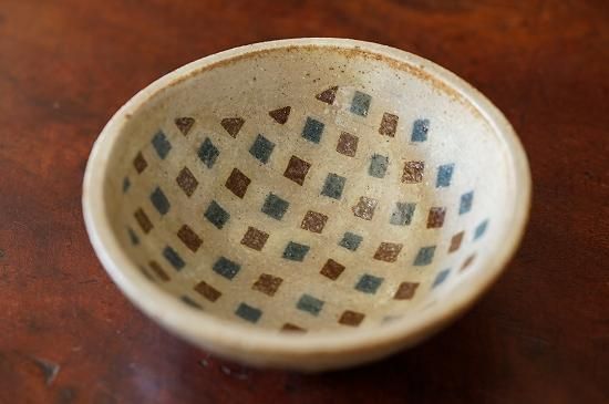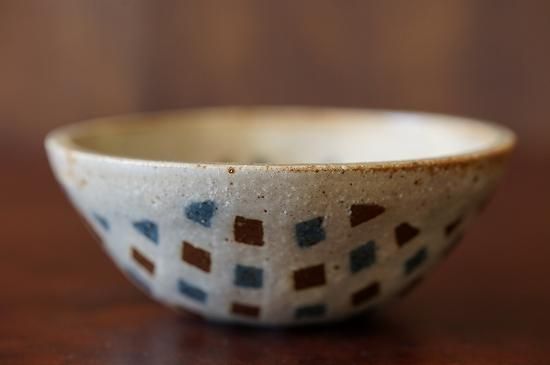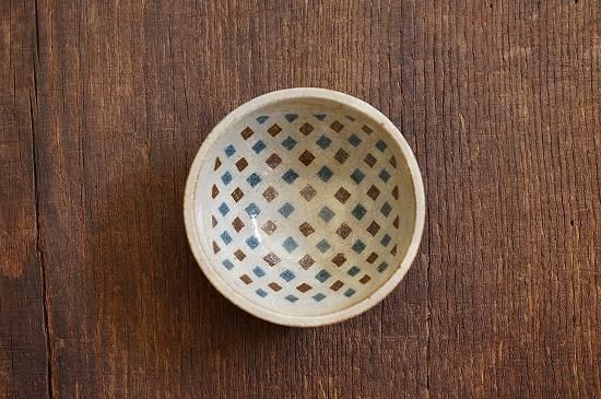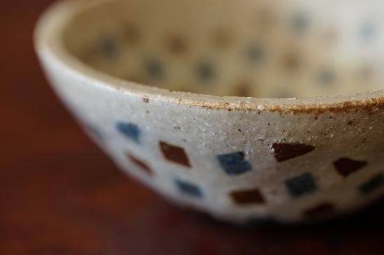 練り込みによって作られるブルーとブラウンのブロック模様がポップで可愛らしく、またアーティスティックな雰囲気にも感じられる素敵なうつわです。お惣菜などの小鉢として、またフルーツやアイスクリームなどのデザート鉢として、ちょうど良いサイズ感です。