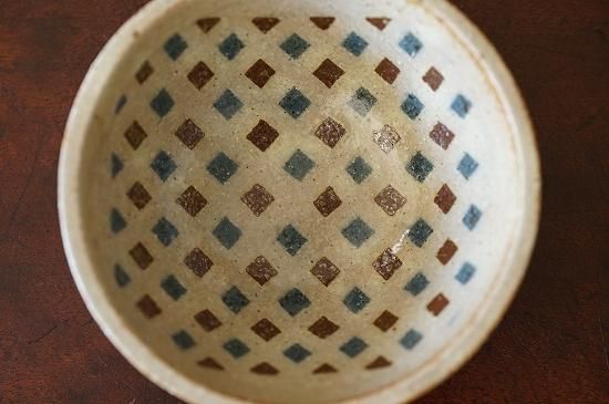 牧谷窯 丸鉢(小)ブルー&ブラウン・ブロック 506