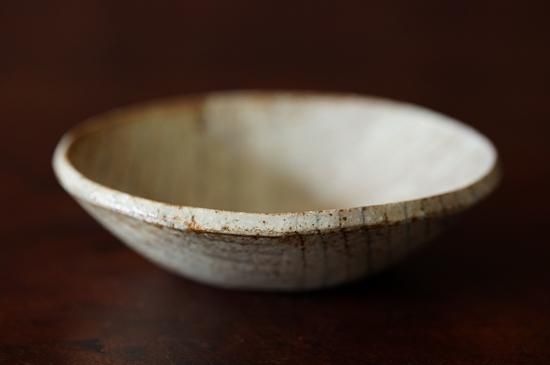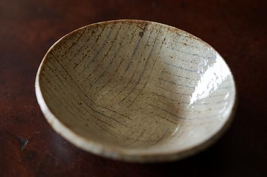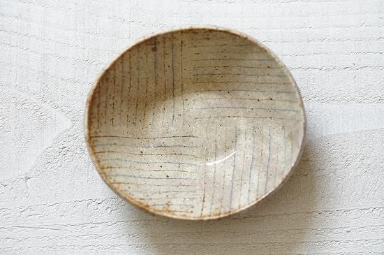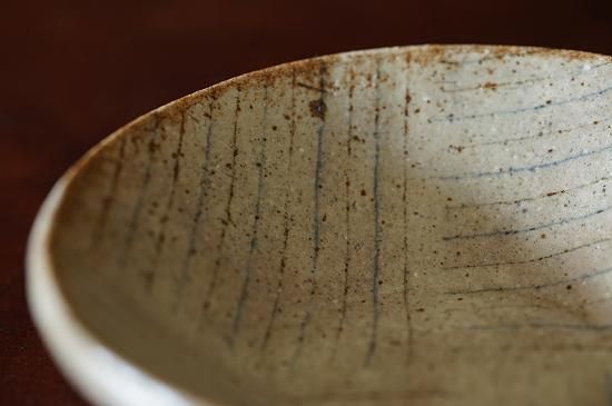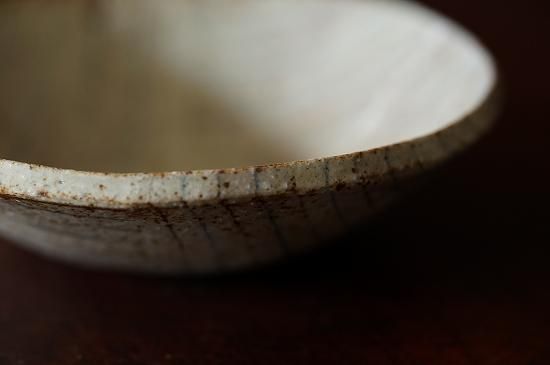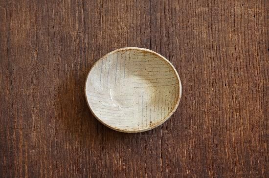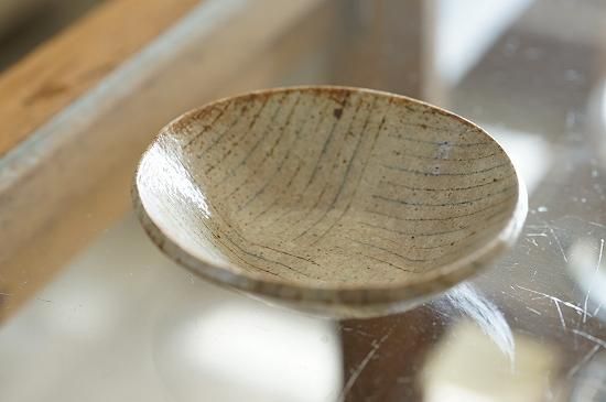 練り込みによって作られるブルーとブラウンの細いラインとベースとなる温かみのある白(ベージュ)の色合いが控えめながらとても美しい佇まいの小さなうつわです。