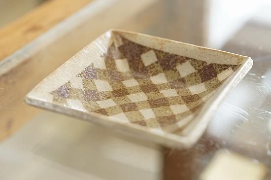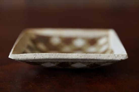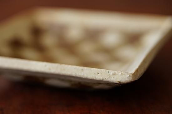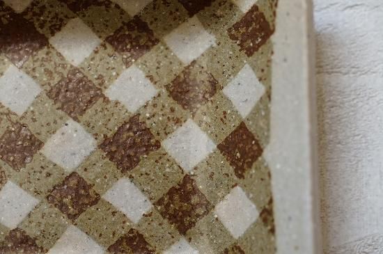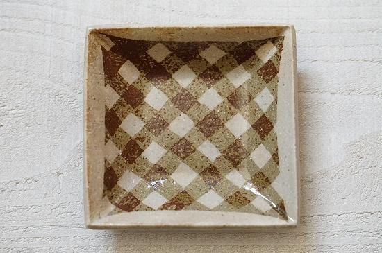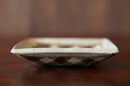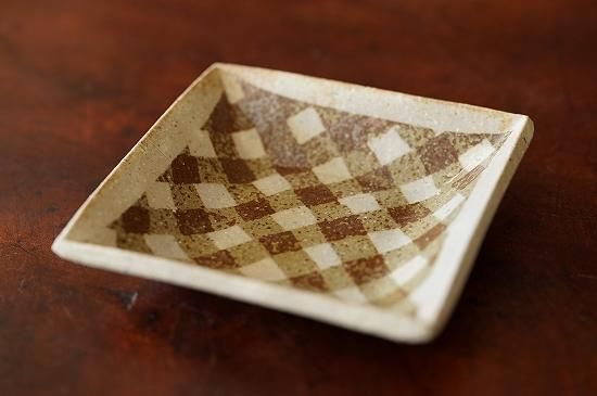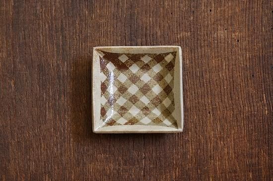 練り込みによって作られるブラウンのギンガムチェックがポップで可愛らしい雰囲気の小さな四角鉢。「練り込みの面白さを感じていただけたら」という作者の意向によりこちらの「角鉢(小)」は価格を変えずに販売しております。眺めても楽しめる杉本さんの練り込みのうつわは、毎日の食卓を楽しく彩ってくれますよ。