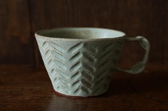 1点1点、細部まで丁寧に作り込まれた奈津子さんのマグカップ。優し気な色合いと手に馴染む質感から温かみを感じていただけるかと思います。いつものお茶の時間や家族と囲む食卓を彩ってくれる素敵なマグカップです。
