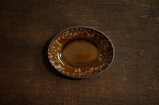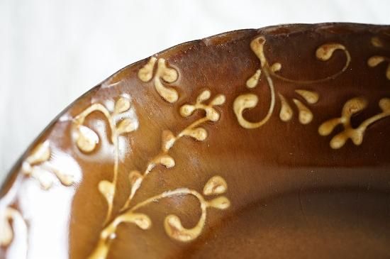 縁に描かれた繊細でリズミカルなイッチンによる唐草模様が美しくお料理を引き立たせてくれそうです。果物やプリンやお菓子など、デザート鉢としてちょうど良いサイズ感のうつわです。