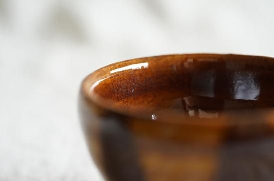 ぽってりとした厚みのある温かみの感じられるぐい呑みです。手に馴染む優しい自然なフォルムが心地良くお酒の時間が楽しくなりそうです。