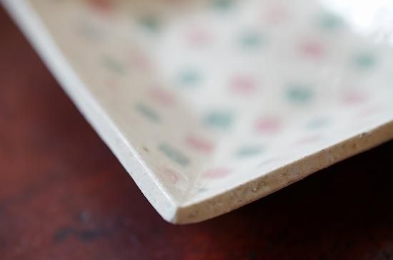 牧谷窯/杉本義訓 角鉢(小)ピンク&グリーン・ブロック 639