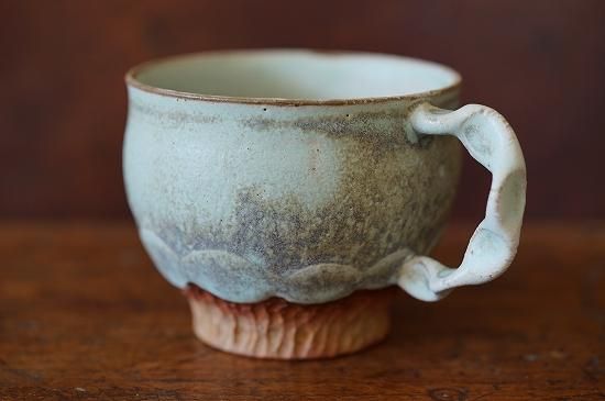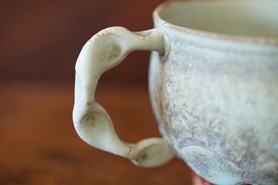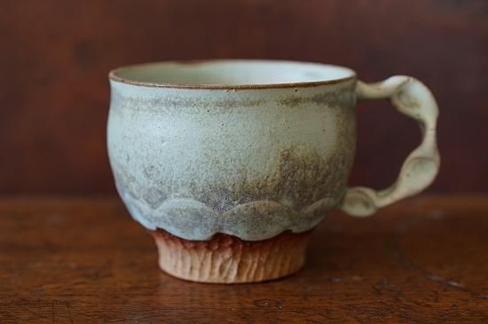 マットな質感と優し気なフォルム、またオリジナリティ溢れるハンドル部分や下部の焼き締め部分の細工など、繊細で可愛らしい雰囲気のマグカップ。焼物ならではの味わい深さが感じられる渡邉奈津子さんらしいディテールに拘った渡邉奈津子さんらしい素敵なマグカップです。1点1点、細部まで丁寧に作り込まれた奈津子さんのマグカップは優し気な色合いと手に馴染む質感で、お茶の時間を彩ってくれそうです。