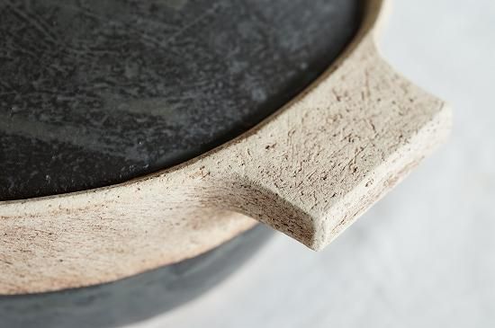 手びねりによって作られる野村亜矢さんの土鍋は、手間を惜しまずバランスを見ながら何度も削りながら作られており、造形的にもとても美しい作品です。全体のバランスもとても良く、両サイドに付けられている取手付近の造形は流れるような流線形で本体とジョイントされており、とても自然な美しさを感じます。またふたのつまみも野村亜矢さんの土鍋では特徴的な要素のひとつになっています。
