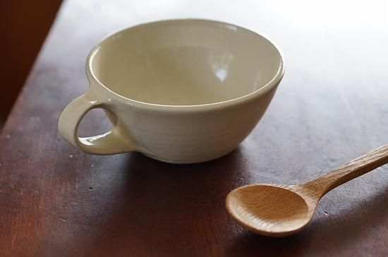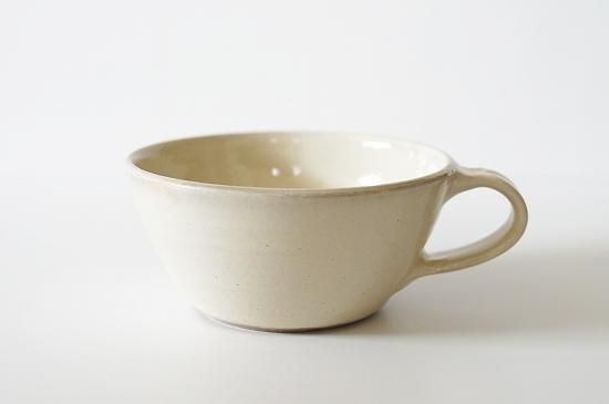 温かみの感じられる出西窯の白とシンプルながら洗練されたフォルムが美しいスープカップ。スープはもちろん、小鉢としても使い勝手の良いサイズ感で、毎日の食卓に活躍してくれるうつわですよ。