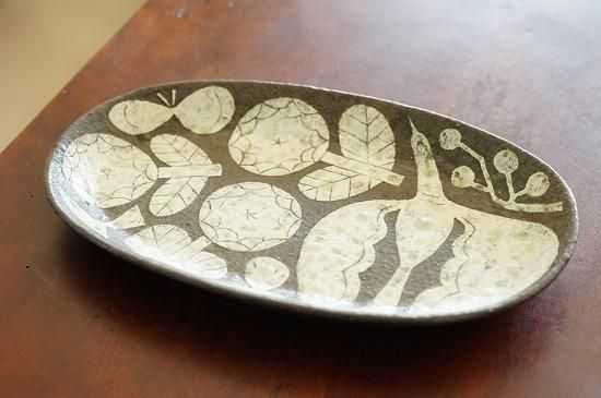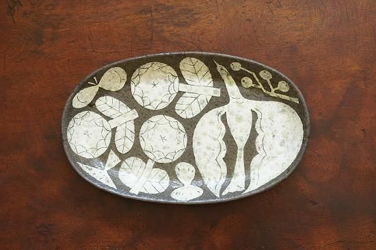 牧谷窯/杉本義訓 6寸皿(ブルー&ホワイト&ブラウン)612