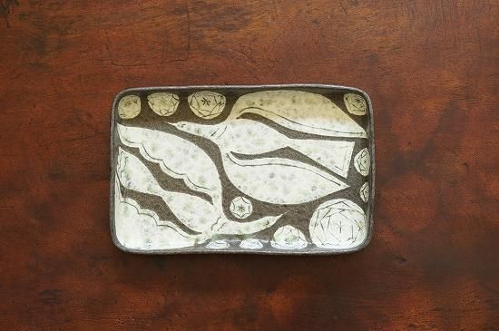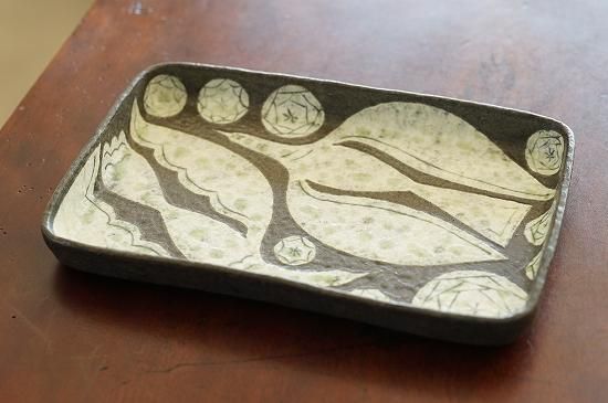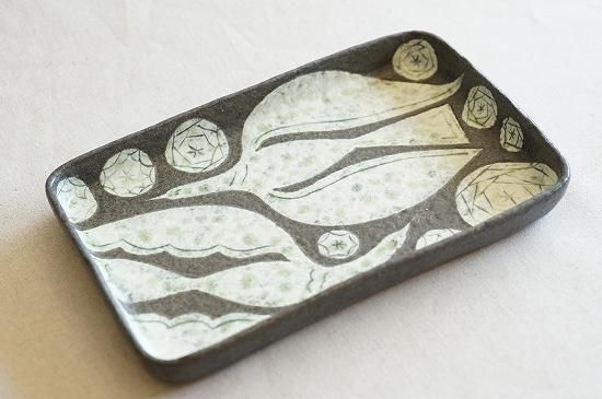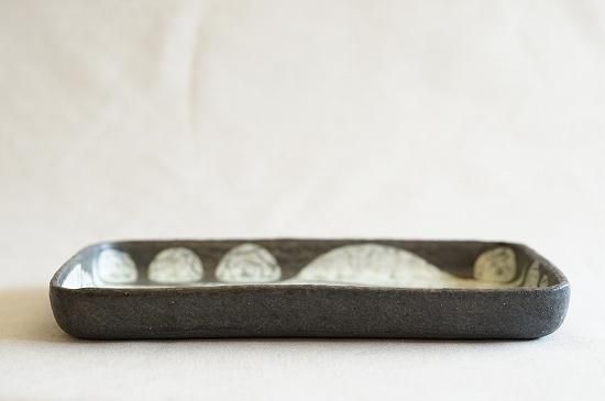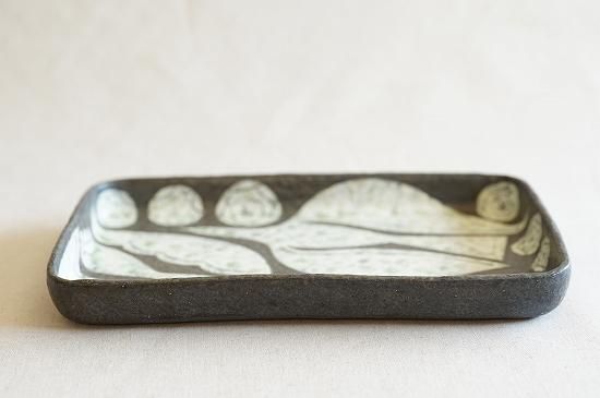 ふちの部分に立ち上がりのある長方形のお皿です。