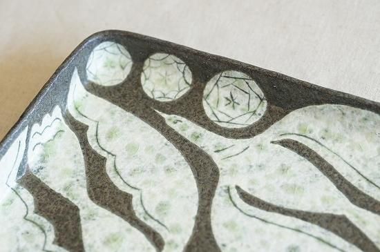 動物や植物などを主なモチーフとして、うつわやオブジェなどを制作しています。常に変化し続けている作品からは、まるで物語が続いているかのような、ゆるやかな繋がりが感じられ、また作者の優しいお人柄が感じられます。最近では、より簡略化されたモチーフがまるで図形のような記号のような雰囲気が感じられるものもあり、独自な表現が際立ってきています。また、お料理やお菓子作りも得意な北川さんの作るうつわは、お料理を限定せず幅広い用途でお使いいただけるものが多く、使い勝手の良さにも定評があります。