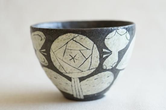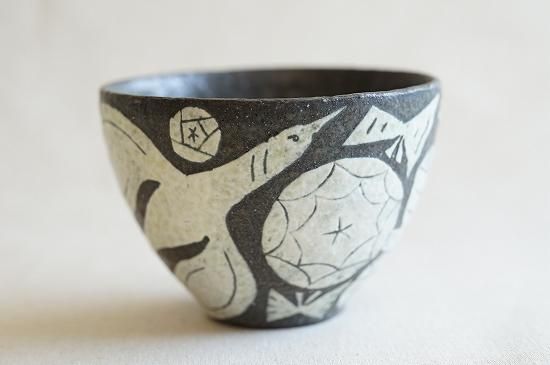 動物や植物などを主なモチーフとして、うつわやオブジェなどを制作しています。常に変化し続けている作品からは、まるで物語が続いているかのような、ゆるやかな繋がりが感じられ、また作者の優しいお人柄が感じられます。最近では、より簡略化されたモチーフがまるで図形のような記号のような雰囲気が感じられるものもあり、独自な表現が際立ってきています。また、お料理やお菓子作りも得意な北川さんの作るうつわは、お料理を限定せず幅広い用途でお使いいただけるものが多く、使い勝手の良さにも定評があります。