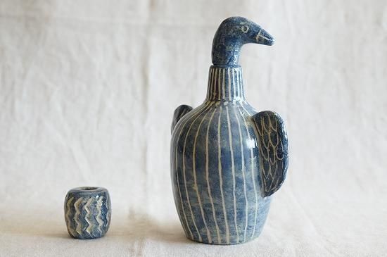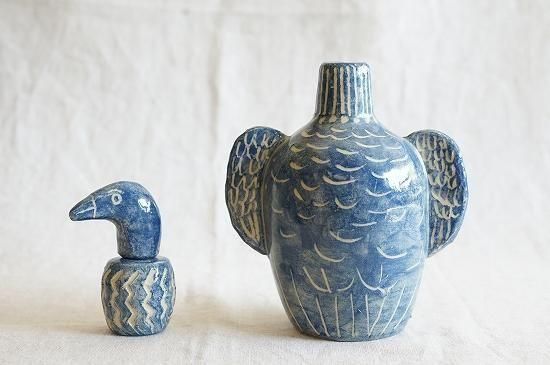 異国情緒も漂う独特なフォルムや表情のある青い色彩や模様など、美しくもプリミティブな魅力の感じられる青い鳥。花器としてオブジェとして、インテリアに調和しながら空間を優しく彩ってくれそうです。