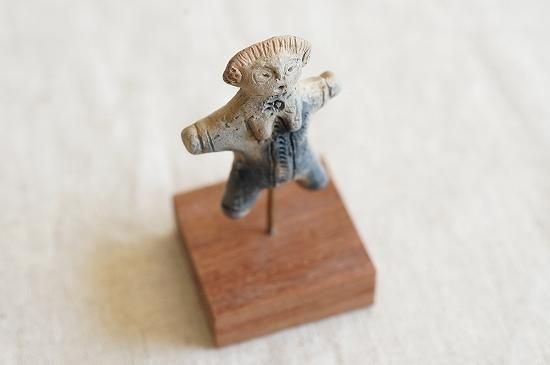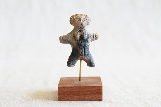 野焼きによる複雑で味わい深い焼き色が自然の温かみや優しさを感じます。素朴なお顔の表情や模様などに古代の人々の自然との調和や共存に思いを馳せて眺めていると、何だか温かな気持ちになります。